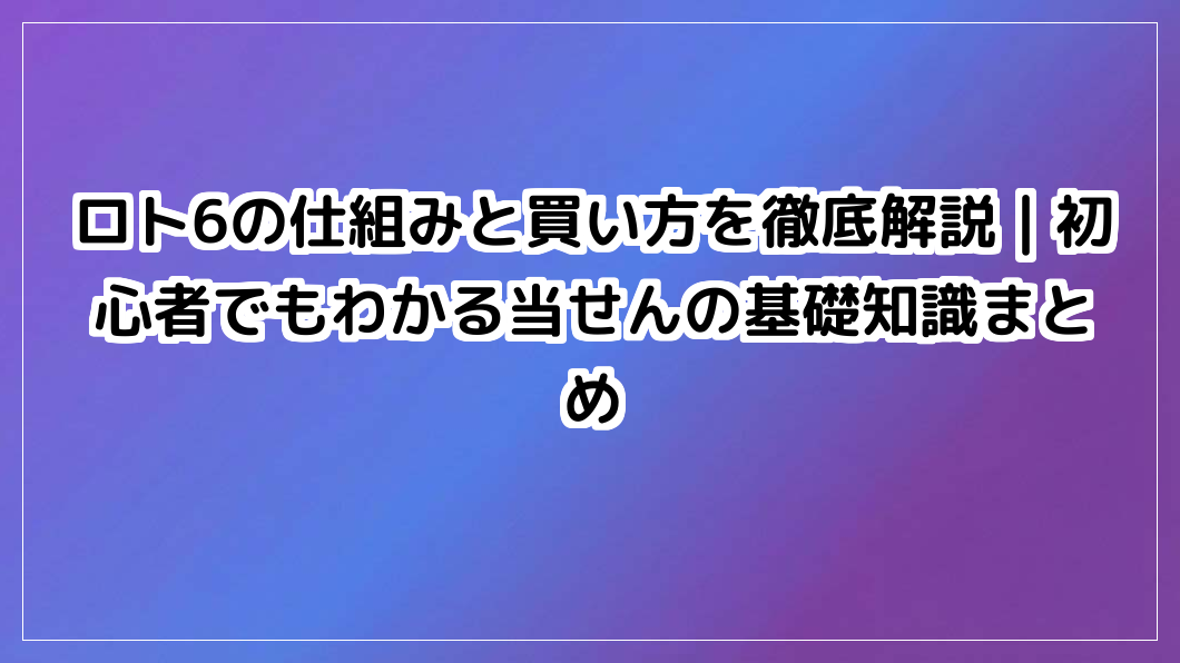 ロト6の仕組みと買い方を徹底解説|初心者でもわかる当せんの基礎知識まとめ
