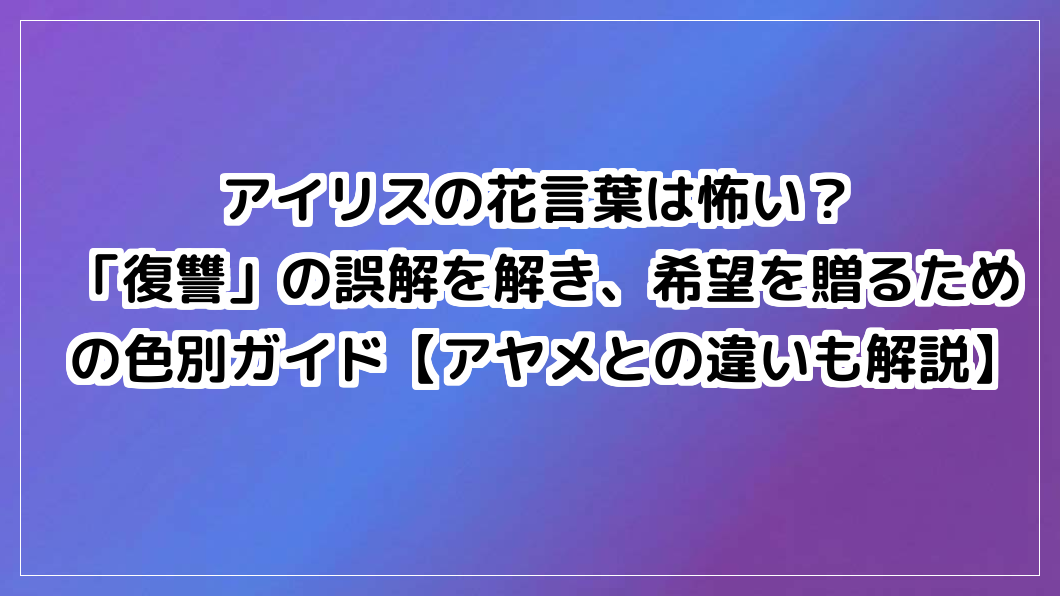 「アイリスの花言葉は怖い?」その誤解を解き放ちます。「復讐」とされる黄色いアイリスの意味や、色別の花言葉を徹底解説。大切な人に希望を贈るための、自信あふれるアイリスガイドです。アヤメとの見分け方も。
