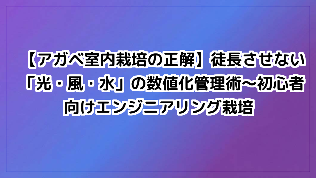 アガベの室内栽培で徒長させない正解は、光・風・水を数値化するエンジニアリング栽培。初心者でも、データに基づき理想の美しいアガベを育てられます。もう曖昧なアドバイスは不要です。