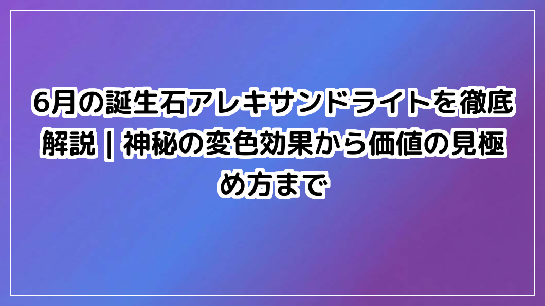 6月の誕生石アレキサンドライトの全貌を解説。昼はエメラルド、夜はルビーに変わる神秘の変色効果から、稀少な価値の見極め方まで。特別なアレキサンドライトを見つけよう。
