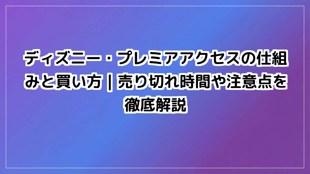 ディズニー・プレミアアクセスの仕組みと買い方|売り切れ時間や注意点を徹底解説