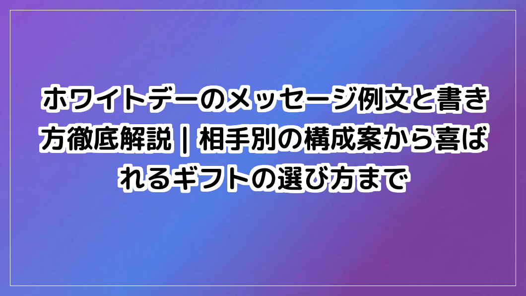 ホワイトデーのお返し、メッセージでギフトの価値を数倍に。心に残るホワイトデー メッセージの書き方、相手別例文、喜ばれるギフト選びまで徹底解説。あなたの想いを言葉で伝えませんか?