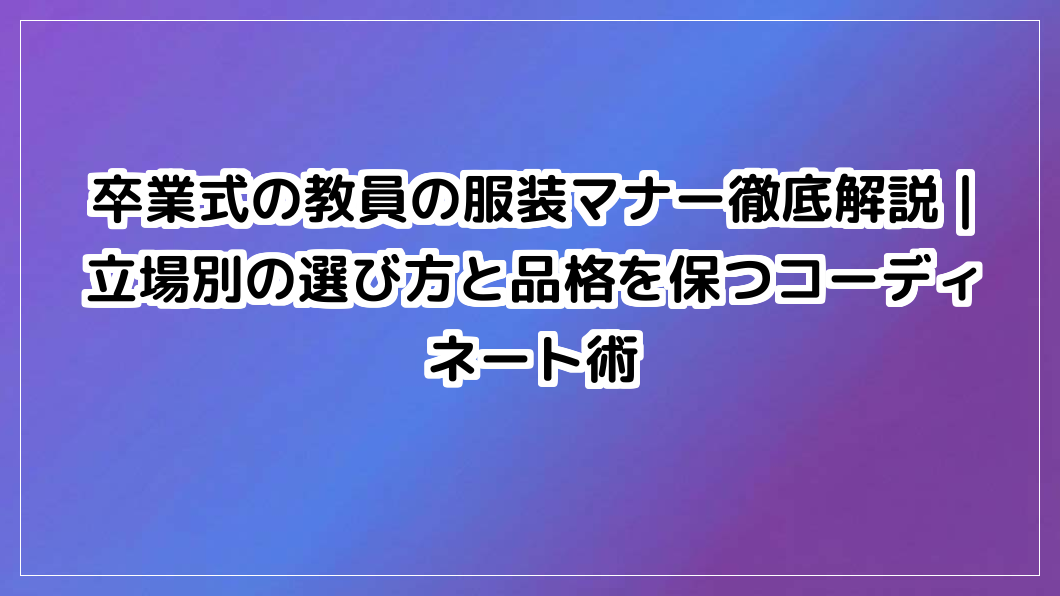卒業式の服装、教員としてどう選ぶ?立場別のマナーと品格あるコーディネート術を徹底解説。卒業式 服装教員の悩みを解決し、自信を持って教え子を送り出しましょう。