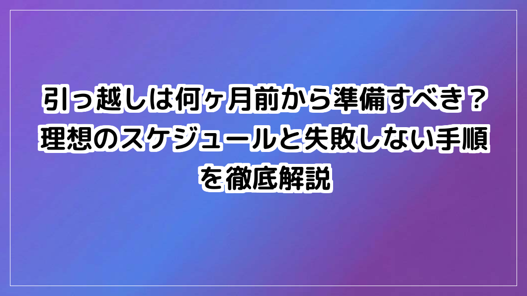 引っ越しは何ヶ月前から準備すべき?ストレスなく無駄を抑える理想のスケジュールを2ヶ月前から徹底解説。失敗しない手順で不安を解消し、新生活をスムーズに始めましょう。