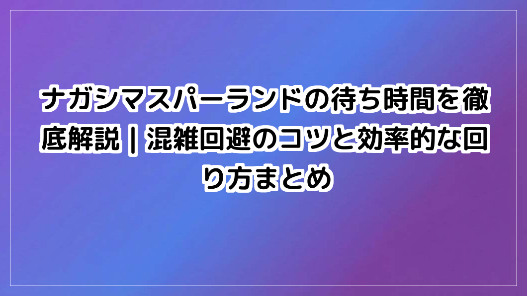 ナガシマスパーランドを待ち時間で後悔したくない方へ。人気アトラクションのナガシマスパーランド平均待ち時間を徹底分析。公式アプリや優先券、時間差行動で混雑を回避し、効率的な回り方でパークを満喫する攻略法を解説します。