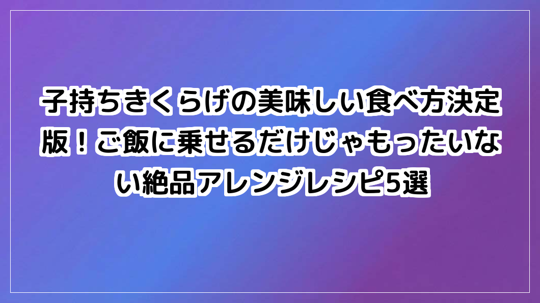 子持ちきくらげを冷蔵庫で眠らせていませんか?ご飯のお供だけじゃない、味付け要らずの万能調味料。卵焼きやパスタなど絶品アレンジレシピ5選で、食卓が劇的に変わる!お得な購入先も。