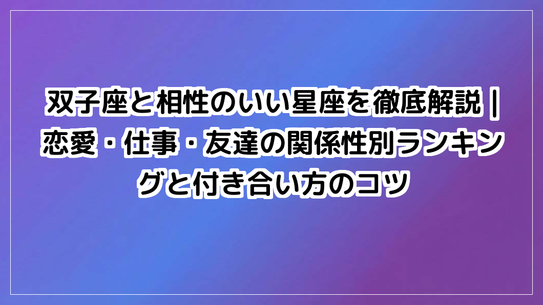 双子座のあなたは誰と最高の相性?恋愛・仕事・友達の関係性別ランキングで「双子座と相性のいい星座」を徹底解説。人間関係を軽やかにする付き合い方のコツも紹介します。