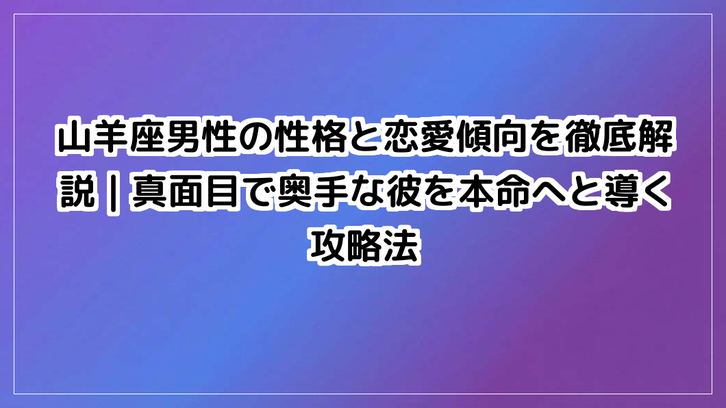 山羊座男性の恋愛傾向が分からず悩んでいませんか?真面目で奥手な彼の性格や複雑な心理、本命だけに見せるサインを徹底解説。気になる山羊座男性との関係を深める攻略法をご紹介します。