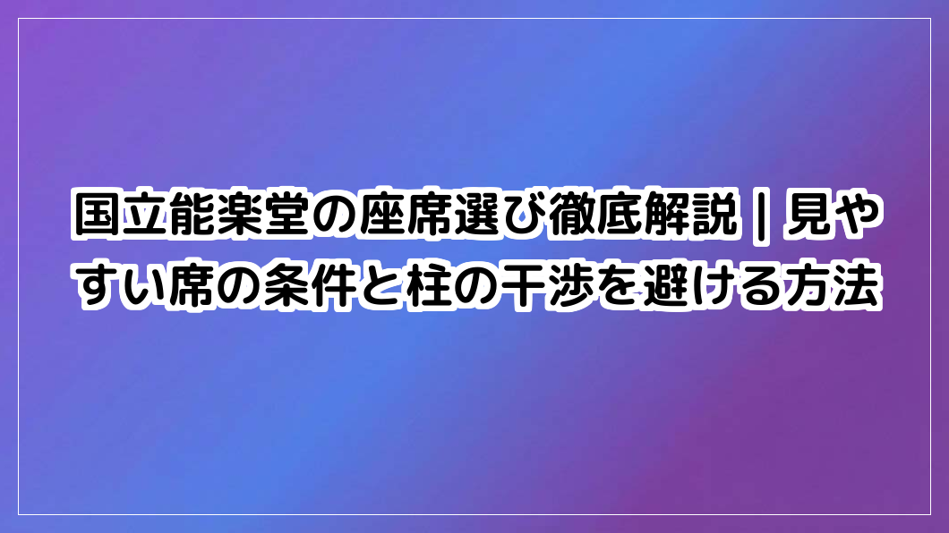 国立能楽堂で最高の観劇体験を手に入れるために