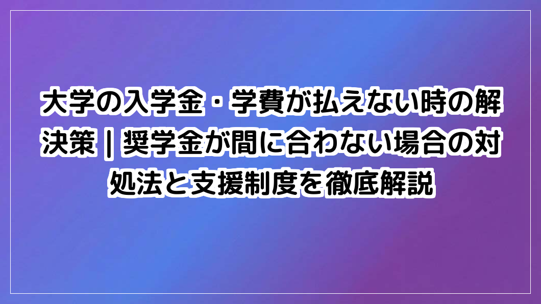 大学の入学金・学費が払えない時の解決策|奨学金が間に合わない場合の対処法と支援制度を徹底解説