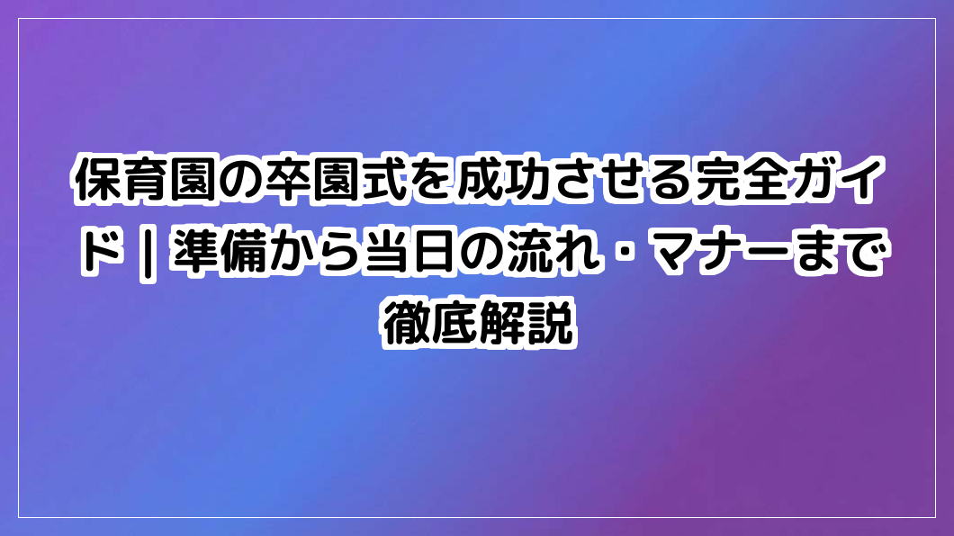 保育園の卒園式を成功させたい方必見。準備から当日の流れ、マナーまで網羅的に解説。不安を解消し、子どもたちの門出を自信を持って迎えましょう。