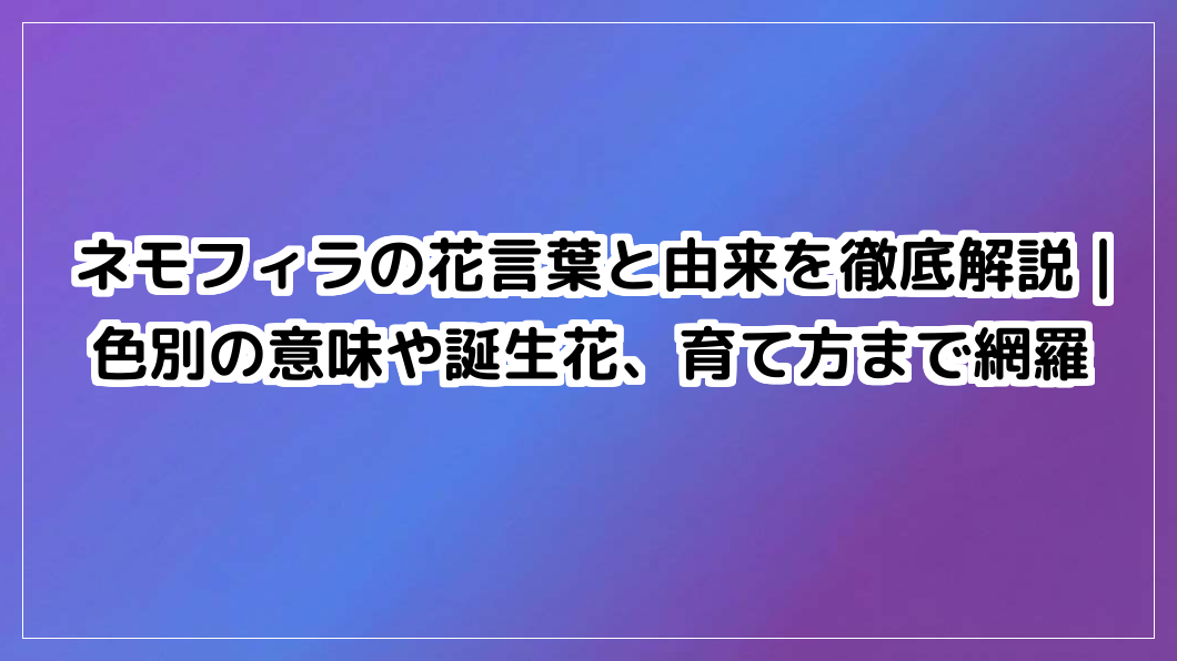 ネモフィラの花言葉や由来、色別の意味を詳しく解説。怖い意味があるという噂の真相や、誕生花、初心者向けの育て方、プレゼント時のマナーまで網羅しています。花言葉「どこでも成功」や「可憐」を添えて、大切な人へ想いを届けましょう。