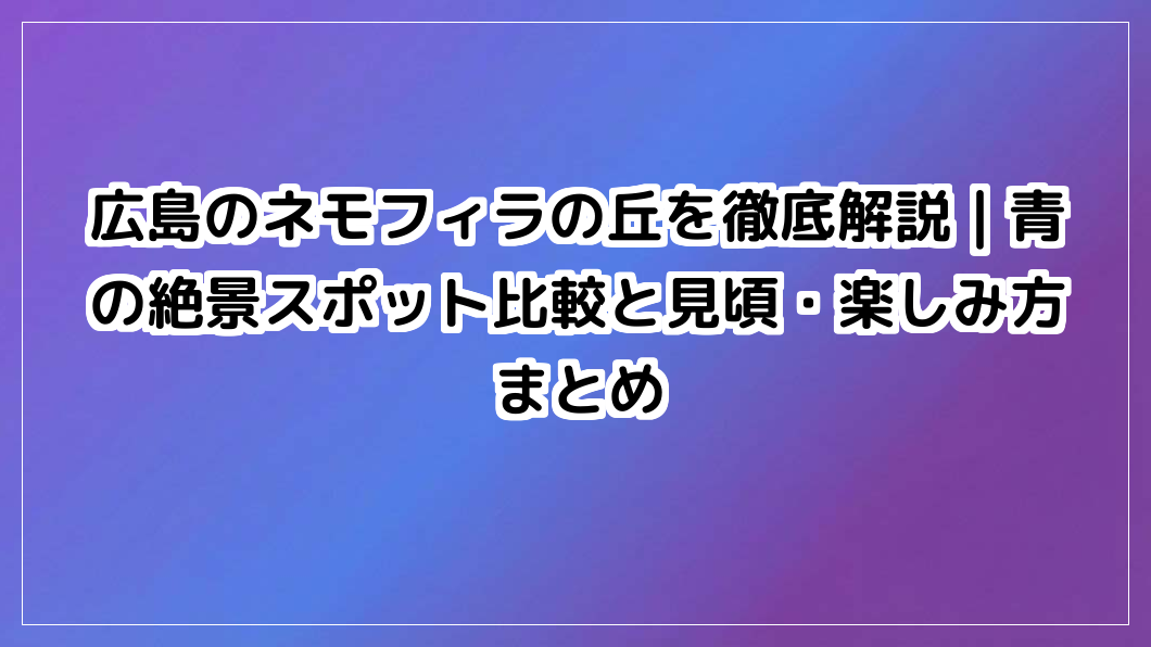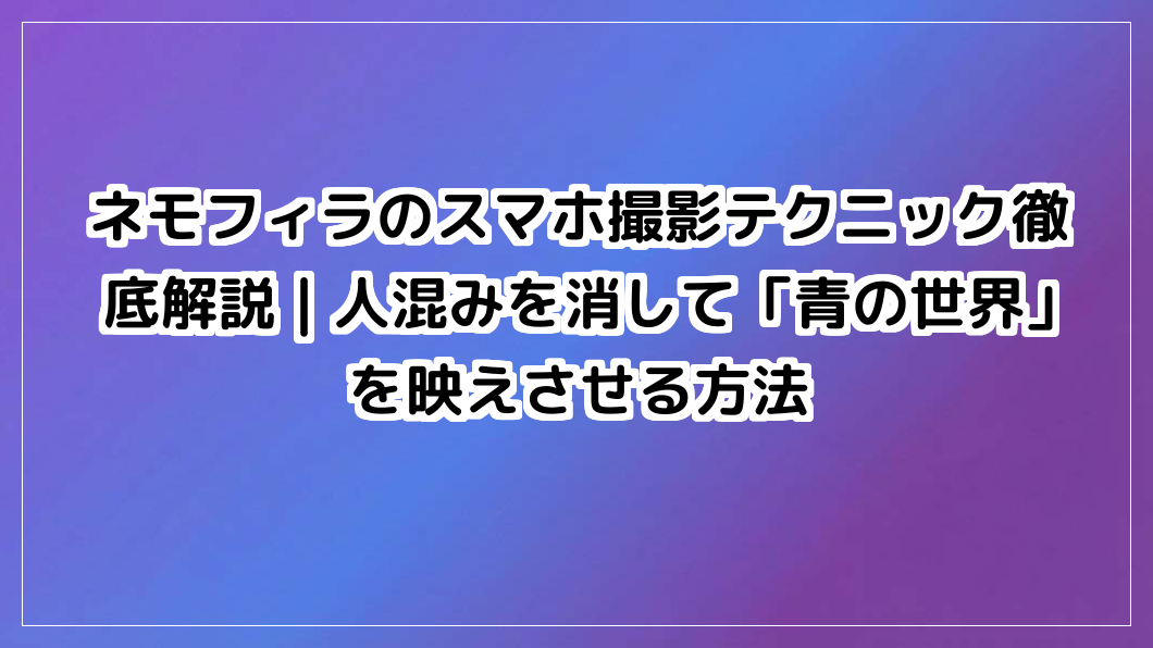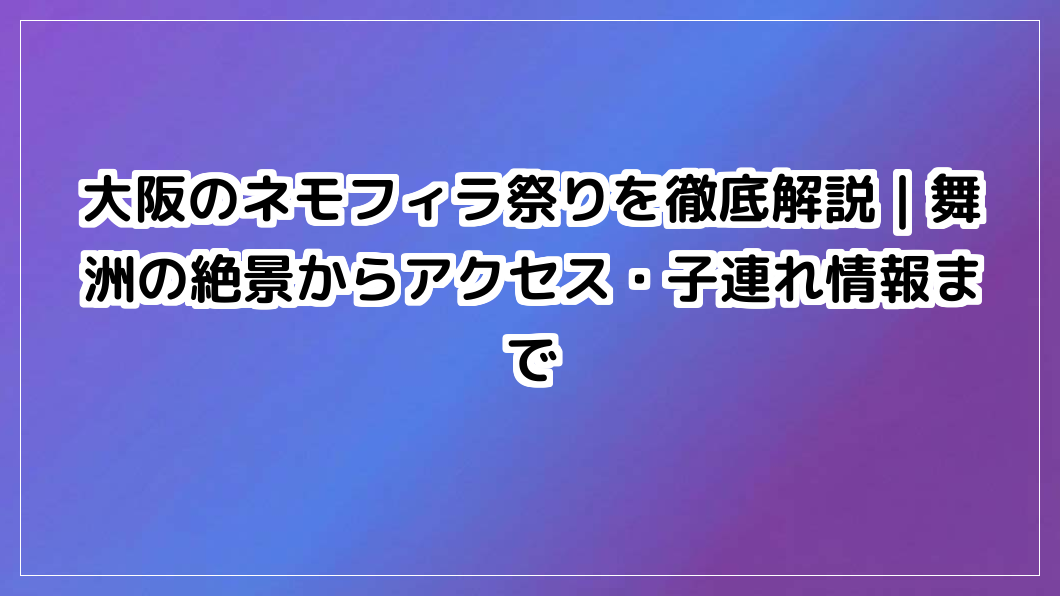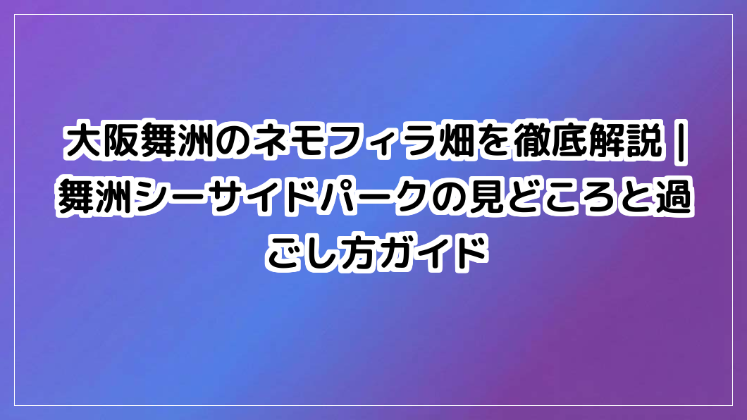 大阪舞洲でネモフィラの絶景を楽しむためのガイド。舞洲シーサイドパークの見どころや写真撮影のコツ、アクセス方法を詳しく解説します。青い海と花々が織りなす非日常的な体験を、あなたも現地で味わってみませんか。