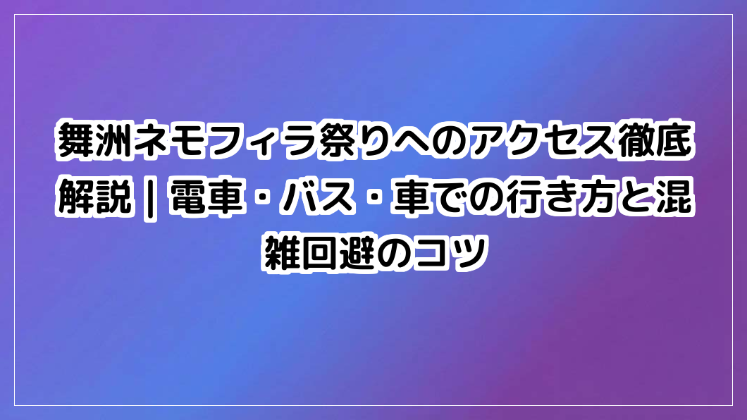 2026年復活開催の舞洲ネモフィラ祭りへのアクセスを徹底解説。キーワード「舞洲 ネモフィラ アクセス」を軸に、JR桜島駅からのバスルートや駐車場の混雑回避、お得な裏技まで、あなたが迷わず絶景に辿り着くための情報を網羅しました。