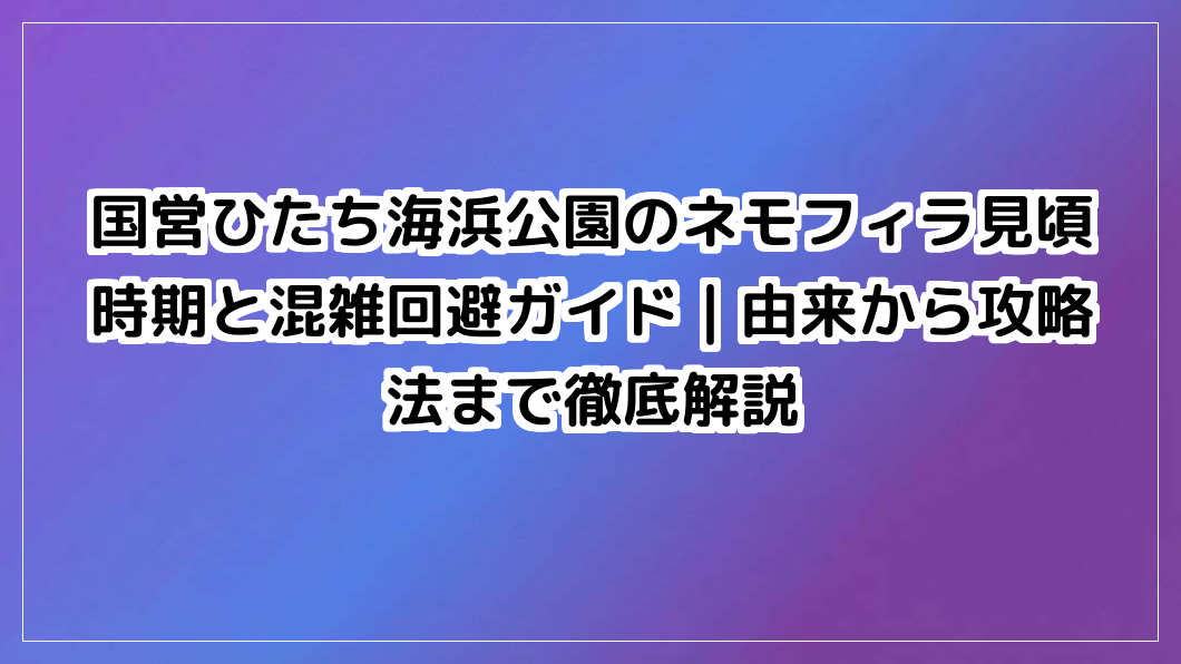 空の青、海の青、そして大地を染め上げるネモフィラの青。視界のすべてがプラチナムブルーに染まる瞬間は、日々の忙しさを忘れさせてくれるほどの感動を与えてくれます。しかし、いざ計画を立てようとすると「混雑は大丈夫?」「子連れでも歩きやすい?」「駐車場やアクセスは?」といった不安も浮かんでくるかもしれません。