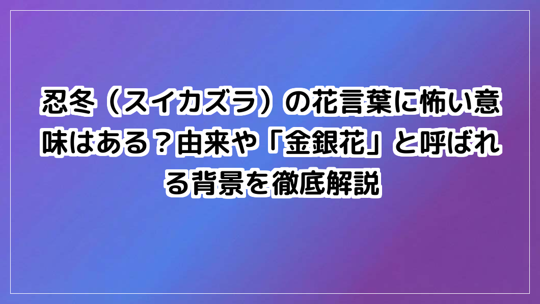 忍冬(スイカズラ)の花言葉に怖い意味があるのか不安なあなたへ。実は「愛の絆」など温かい意味ばかりです。なぜ怖いと言われるのか、その理由や「金銀花」の由来、冬を耐え抜く強さの秘密を詳しく解説します。