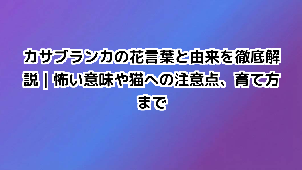 カサブランカの花言葉と由来を徹底解説|怖い意味や猫への注意点、育て方まで