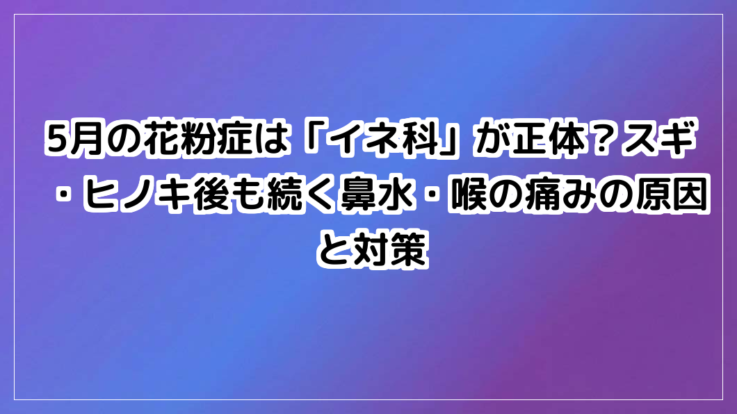 「5月花粉症ひどい」のはスギやヒノキだけが原因ではありません。ゴールデンウィーク後も続く症状の正体は「イネ科」花粉。その特徴と今すぐできる対策を徹底解説します。