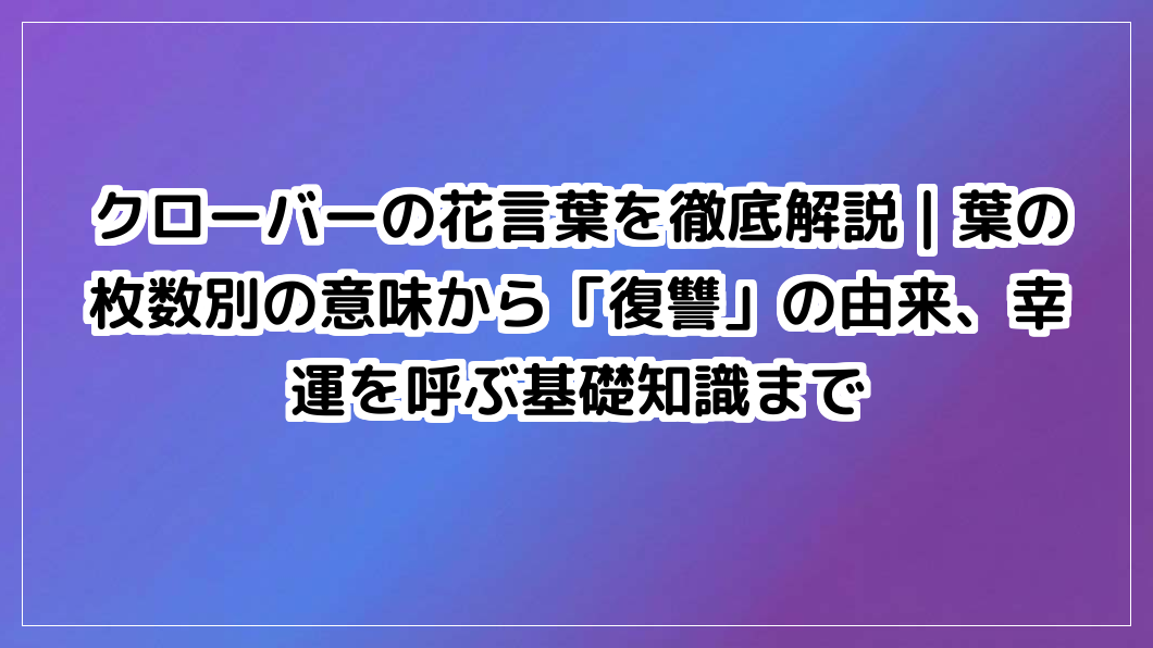 クローバーの花言葉の奥深さを探求。葉の枚数別の意味から「復讐」の由来、幸運を呼ぶ秘密まで徹底解説します。身近な植物の新たな魅力に触れてみませんか?