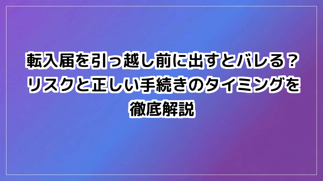 転入届を引っ越し前に出すとバレる?リスクと正しい手続きのタイミングを徹底解説