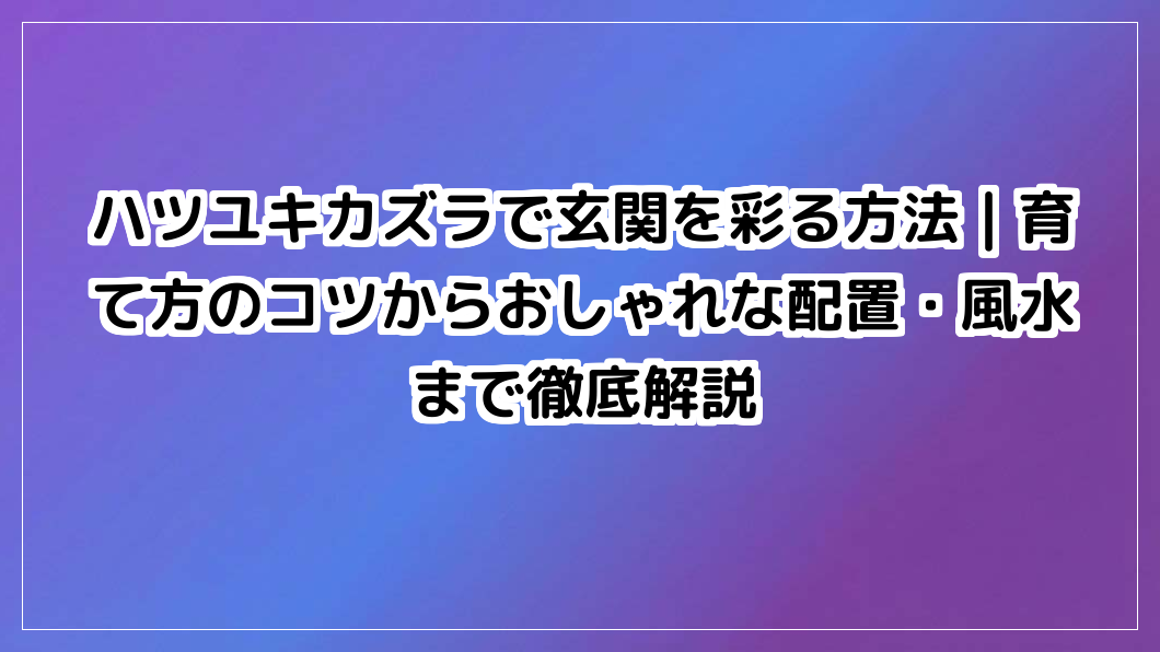 ハツユキカズラで玄関を素敵に彩りませんか?育て方のコツから、おしゃれな配置アイデア、開運効果がある風水まで徹底解説。あなただけの理想の玄関作りをサポートします。