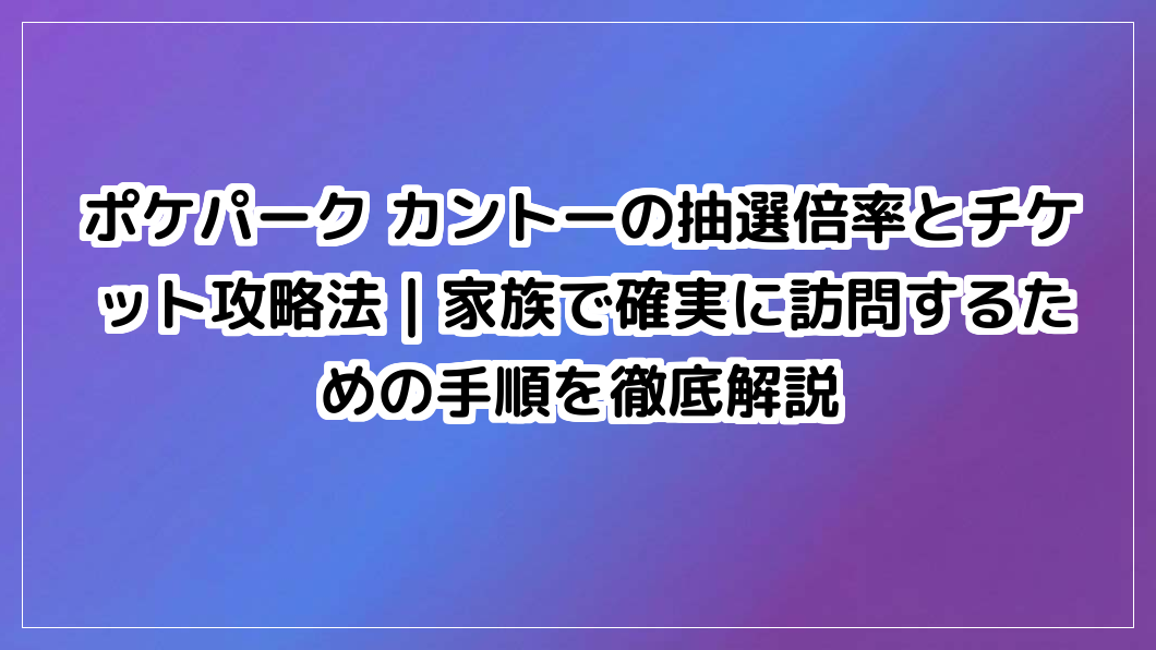 ポケパーク カントーの抽選倍率とチケット攻略法|家族で確実に訪問するための手順を徹底解説