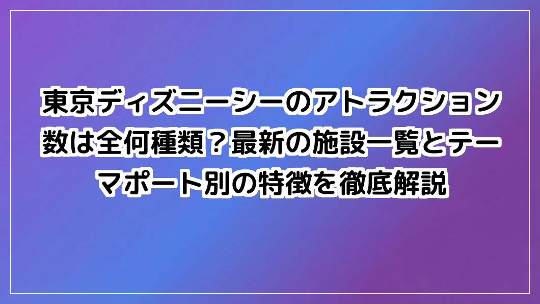 東京ディズニーシーのアトラクション数は全何種類?最新の施設一覧とテーマポート別の特徴を徹底解説