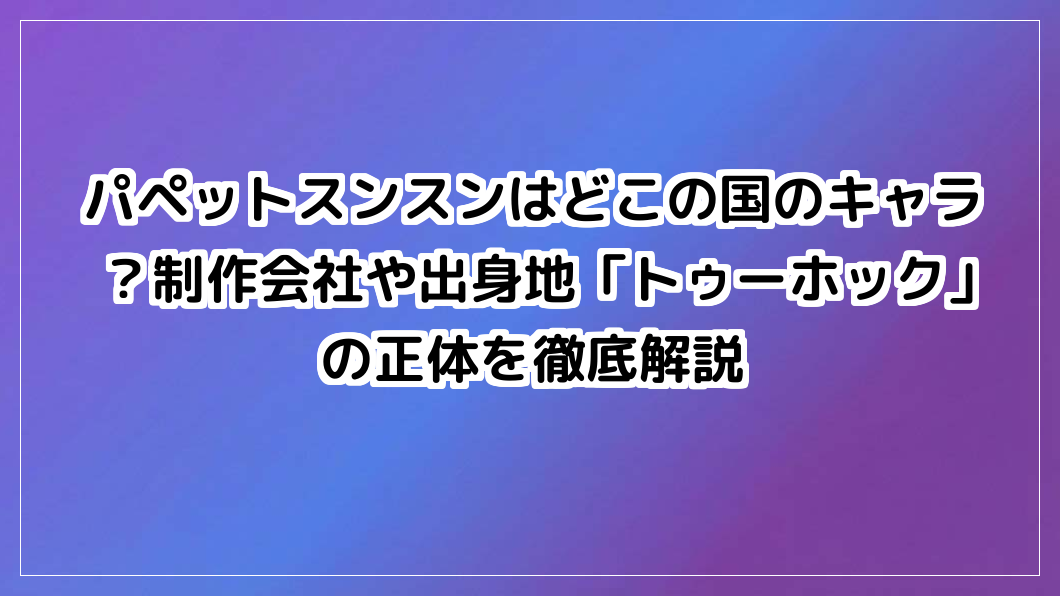 パペットスンスンは誰が作ったのか、その正体を徹底解説。公式の「作者=スンスン」という設定の真意や、制作会社CHOCOLATE Inc.、アニメ版監督の青松拓馬氏など、日本発のプロジェクトを支える制作体制の裏側を紐解きます。