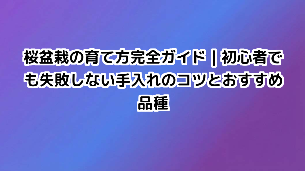 桜盆栽の育て方完全ガイド|初心者でも失敗しない手入れのコツとおすすめ品種