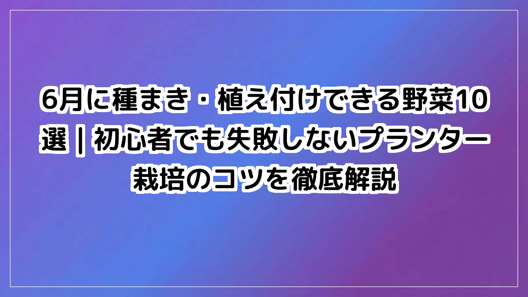 6月に種まき・植え付けできる野菜10選|初心者でも失敗しないプランター栽培のコツを徹底解説