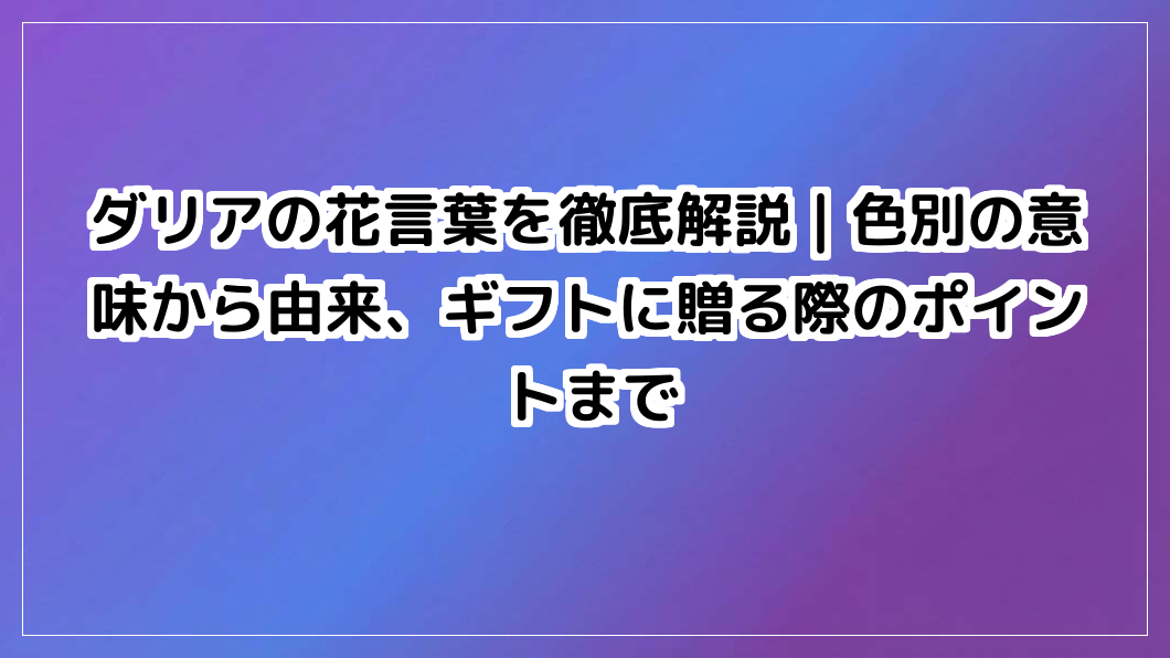 ダリアの美しい姿に秘められたダリア花言葉を徹底解説。優雅な意味から色別のメッセージ、怖いと言われる由来の真実まで。大切な人に自信を持って贈れるよう、ギフト選びの不安を解消します。