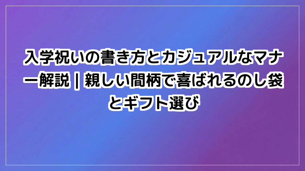 親しい間柄での入学祝い、マナーで悩んでいませんか?カジュアルなのし袋の選び方や表書きの書き方、喜ばれるギフト選びを解説。形式張らない心温まるお祝いのヒントが満載です。
