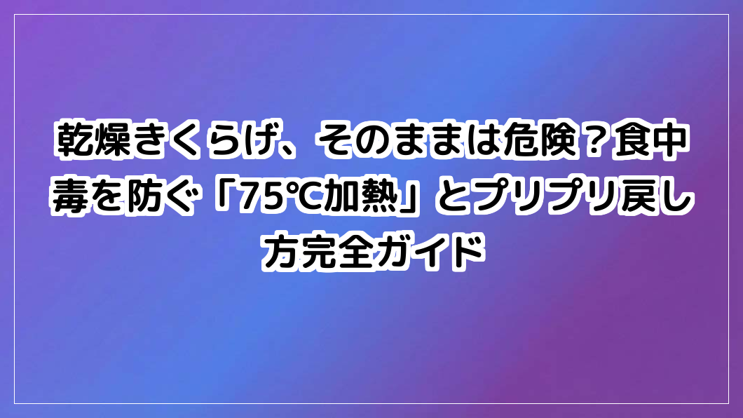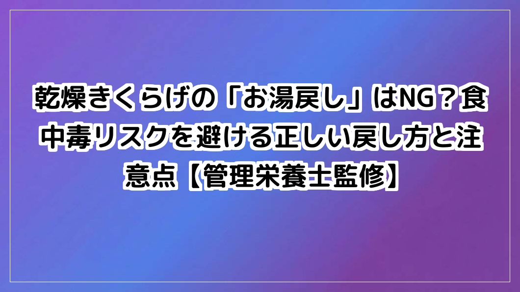乾燥きくらげの食中毒リスク「サルモネラ菌」「ボンクレキン酸」を回避!お湯戻しNG、冷蔵庫で安全に戻し、75℃・1分加熱を。適切な戻し方と注意点を管理栄養士が解説。乾燥 きくらげ 注意すべき点を網羅。