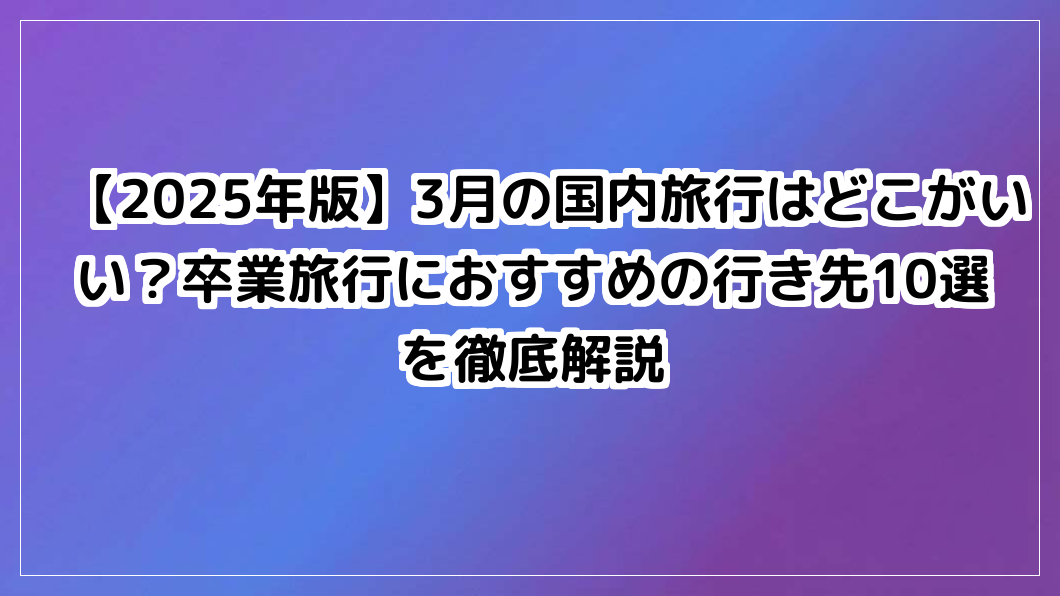 3月の国内旅行や卒業旅行におすすめの行き先10選を徹底解説。北海道や沖縄などテーマ別の人気スポットから予算、服装、予約のコツまで紹介します。最高の思い出を作りたい学生や幹事必見の情報が満載です。