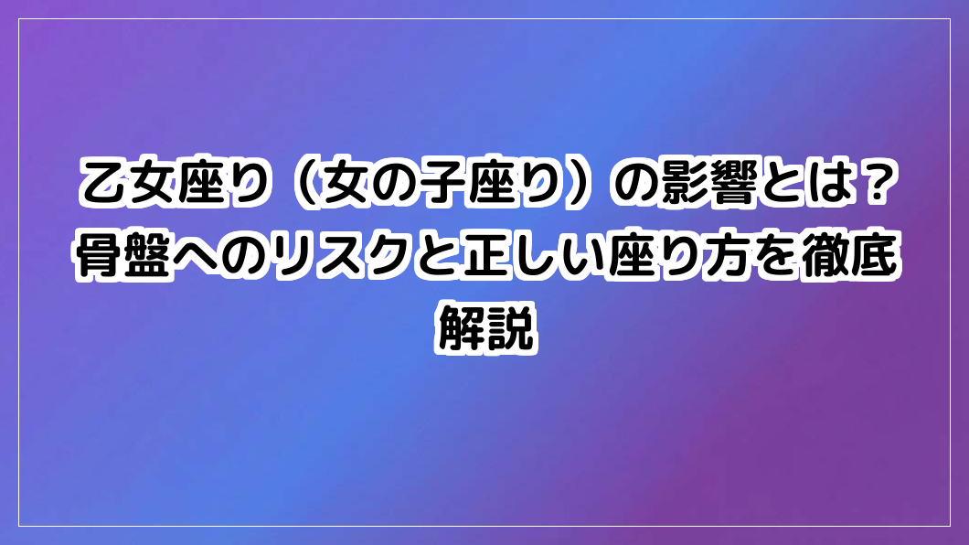 本記事では、乙女座りが身体に与える影響や、なぜその座り方が楽に感じるのかというメカニズム、そして健やかな骨格を保つための正しい座り方について、専門的な視点から詳しく解説します。あなたの日常の習慣を見直し、将来の健康を守るためのヒントとしてお役立てください。