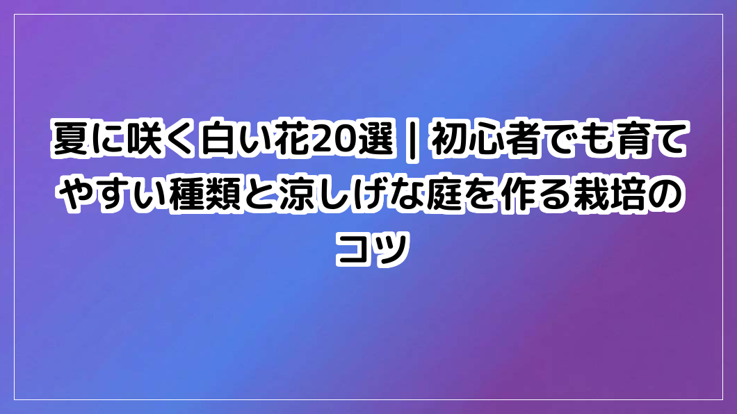 夏に咲く白い花20選|初心者でも育てやすい種類と涼しげな庭を作る栽培のコツ