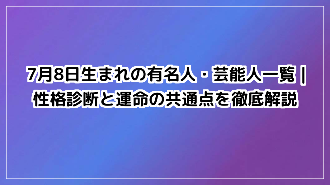 7月8日生まれの有名人・芸能人一覧を徹底紹介。彼らの性格診断や運命の共通点から、あなた自身の秘められた可能性や未来を豊かにするヒントを発見しよう。