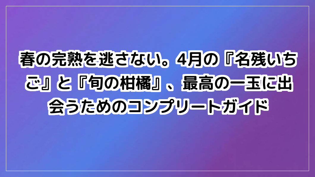 春の完熟を逃さない。4月の『名残いちご』と『旬の柑橘』、最高の一玉に出会うためのコンプリートガイド