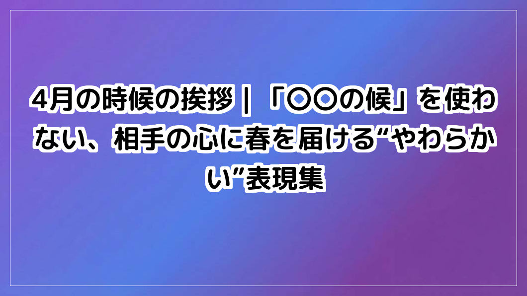 4月時候の挨拶にやわらかい表現を使いませんか?堅苦しい「〇〇の候」を避け、桜の移ろいや季節感あふれる温かい文例を時期別に紹介。親しい相手やビジネスでも役立つ、相手の心に届く言葉選びのコツを丁寧に解説します。