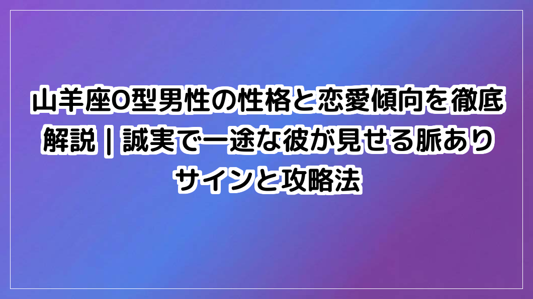 山羊座O型男性の性格と恋愛傾向を徹底解説|誠実で一途な彼が見せる脈ありサインと攻略法