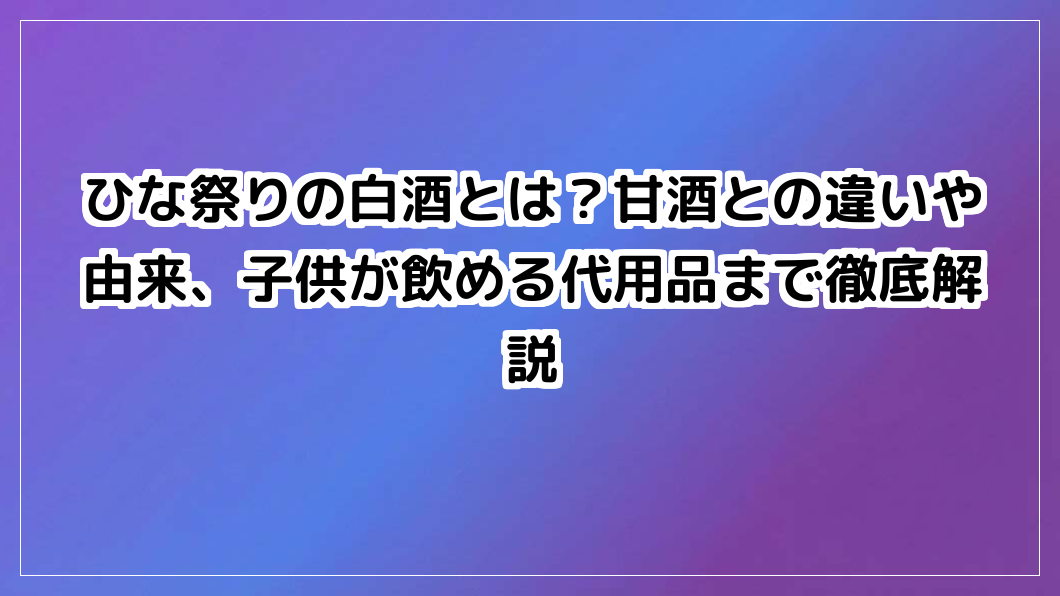 ひな祭り白酒は子供が飲める?甘酒との違いや由来、安心な代用品まで徹底解説。家族みんなで楽しく桃の節句を過ごすための決定版ガイドです。