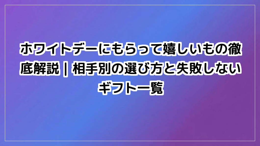 ホワイトデーのお返し選びで迷っていませんか?女性が本当にもらって嬉しいものを、関係性や予算別に徹底解説。失敗しないギフト選びで、自信を持って最高の一品を見つけましょう。