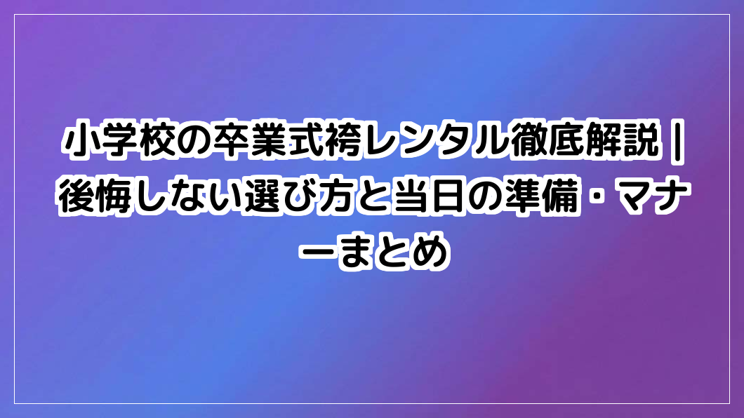 小学校の卒業式で袴レンタルを検討中の保護者の方へ。後悔しない選び方、予約時期、当日の準備やマナー、最新トレンドまで徹底解説。大切な日を最高の思い出にするための情報が詰まっています。